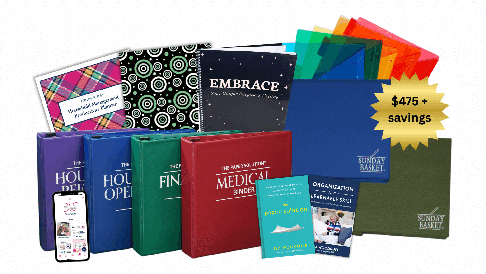 Ready for a complete reset? The Complete Home Organization Bundle is our most comprehensive program – designed to get your entire home and paper organized and increase your productivity in one year or less. Join Lisa Woodruff for a transformative journey where your home environment finally supports you, so you can focus on what you were uniquely created to do.
