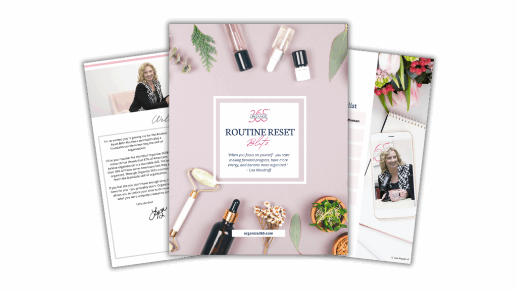 Hi, I’m Lisa Woodruff, CEO of Organize 365® and professional organizer. Organize 365® is where you will learn how to get (and stay) organized! I have been teaching the skill of organization for over 10 years now.